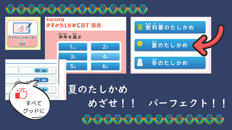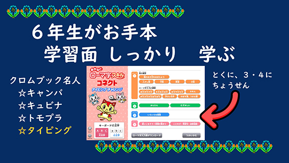 終業式の校長講話では、トモプラを自由課題の一つとして紹介しました。「きそのたしかめCBT」の「夏のたしかめ」や、辞典アプリの「ことばクイズ」、「あかねこローマ字スキルコネクト タイピングチャレンジ」のステップ3・4など、児童が自分のペースで挑戦できる内容を伝えました。