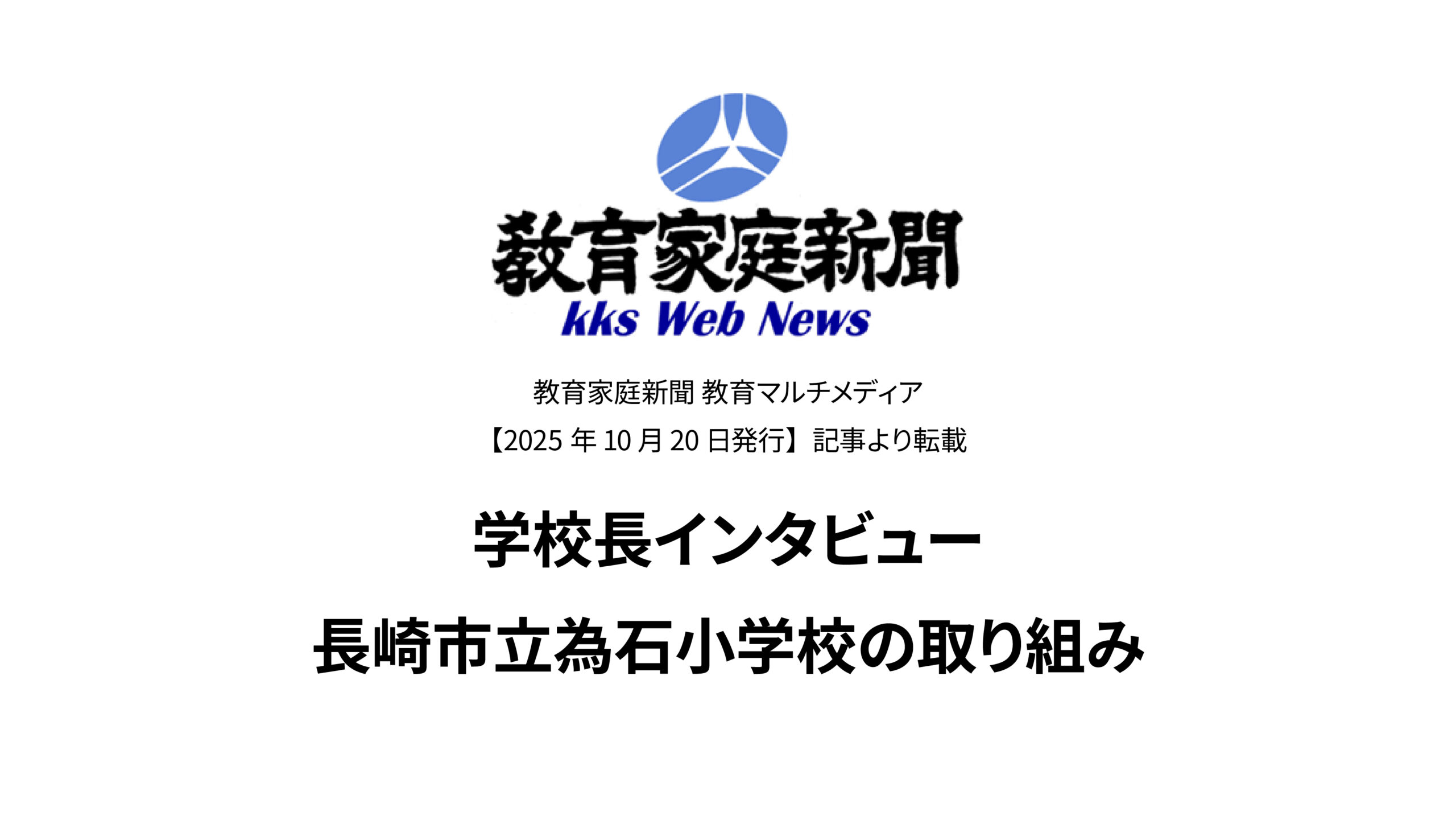 学校長インタビュー 長崎市立為石小学校の取り組み