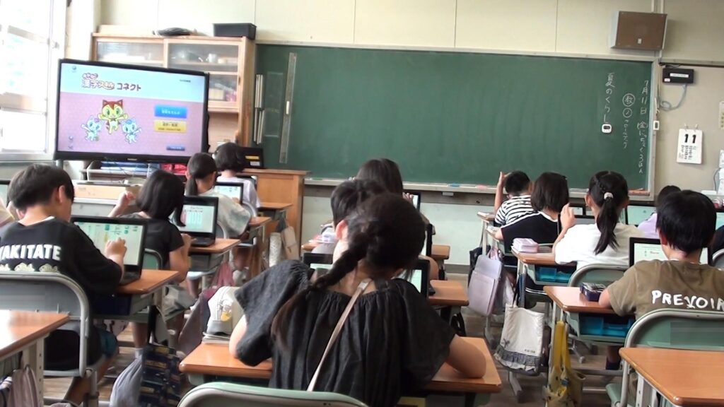 児童は操作にもすっかり慣れており、テンポよく次々に解き進めています。「集中して、自ら学ぶ」という真剣な空気が教室全体に広がっていました。