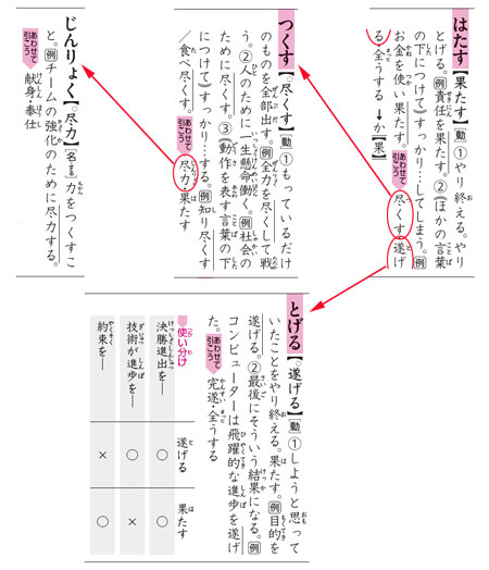 あわせて引いた先に、元の言葉との使い分けが分かる表が示されている場合もあります。